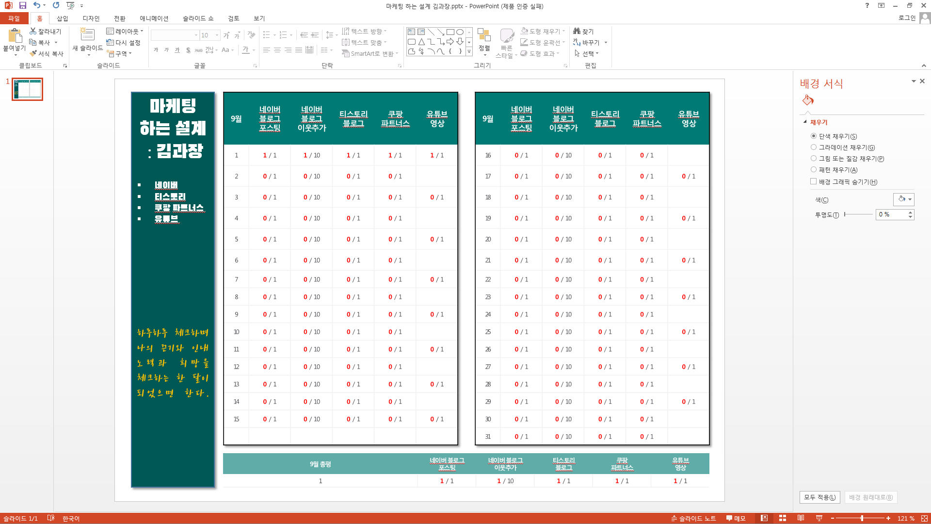 한달 스케줄표 : ppt 스케줄표(작심한달)